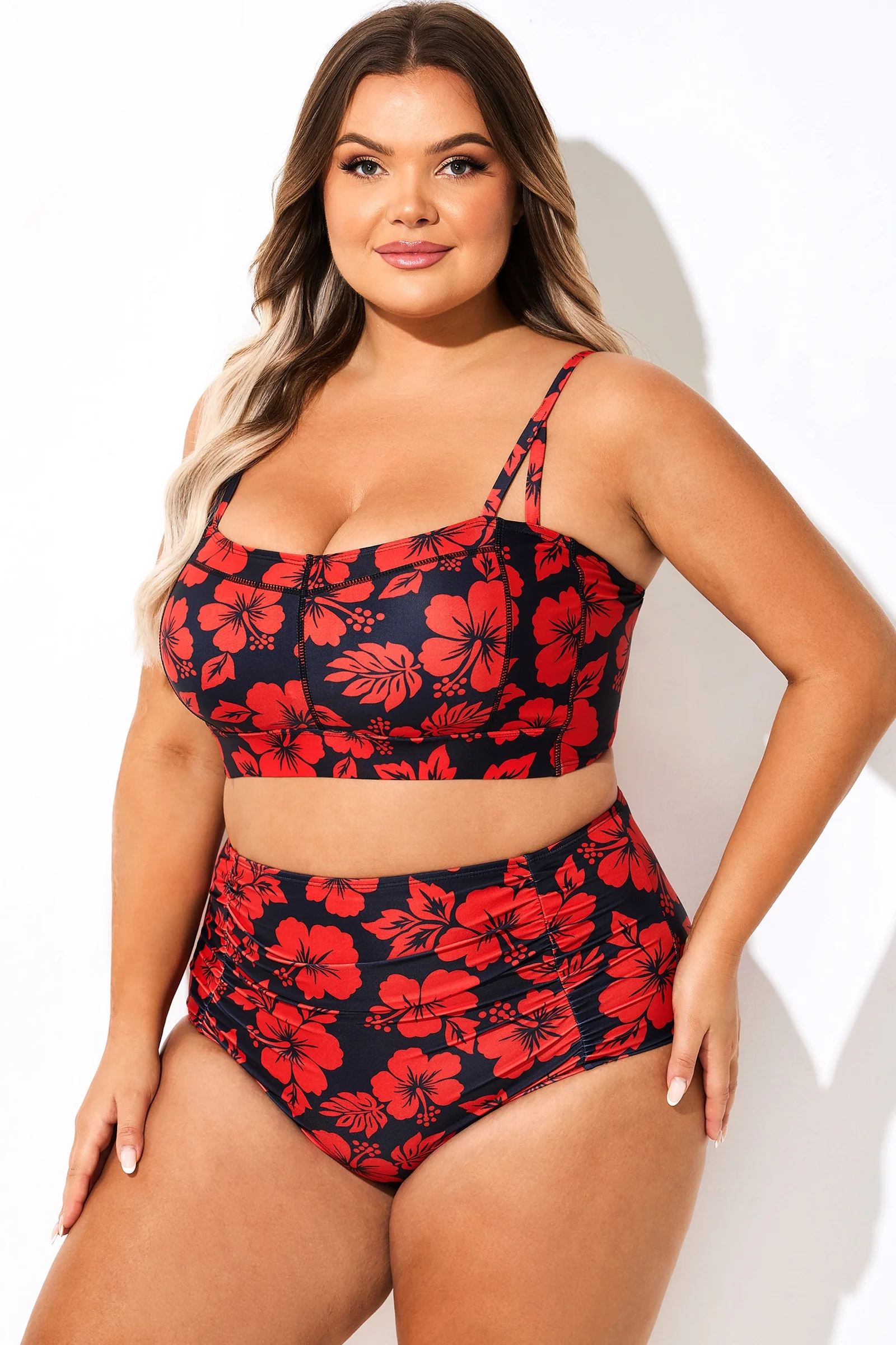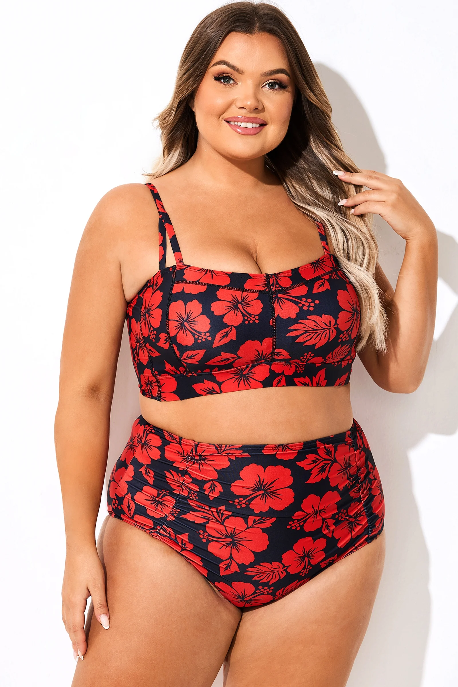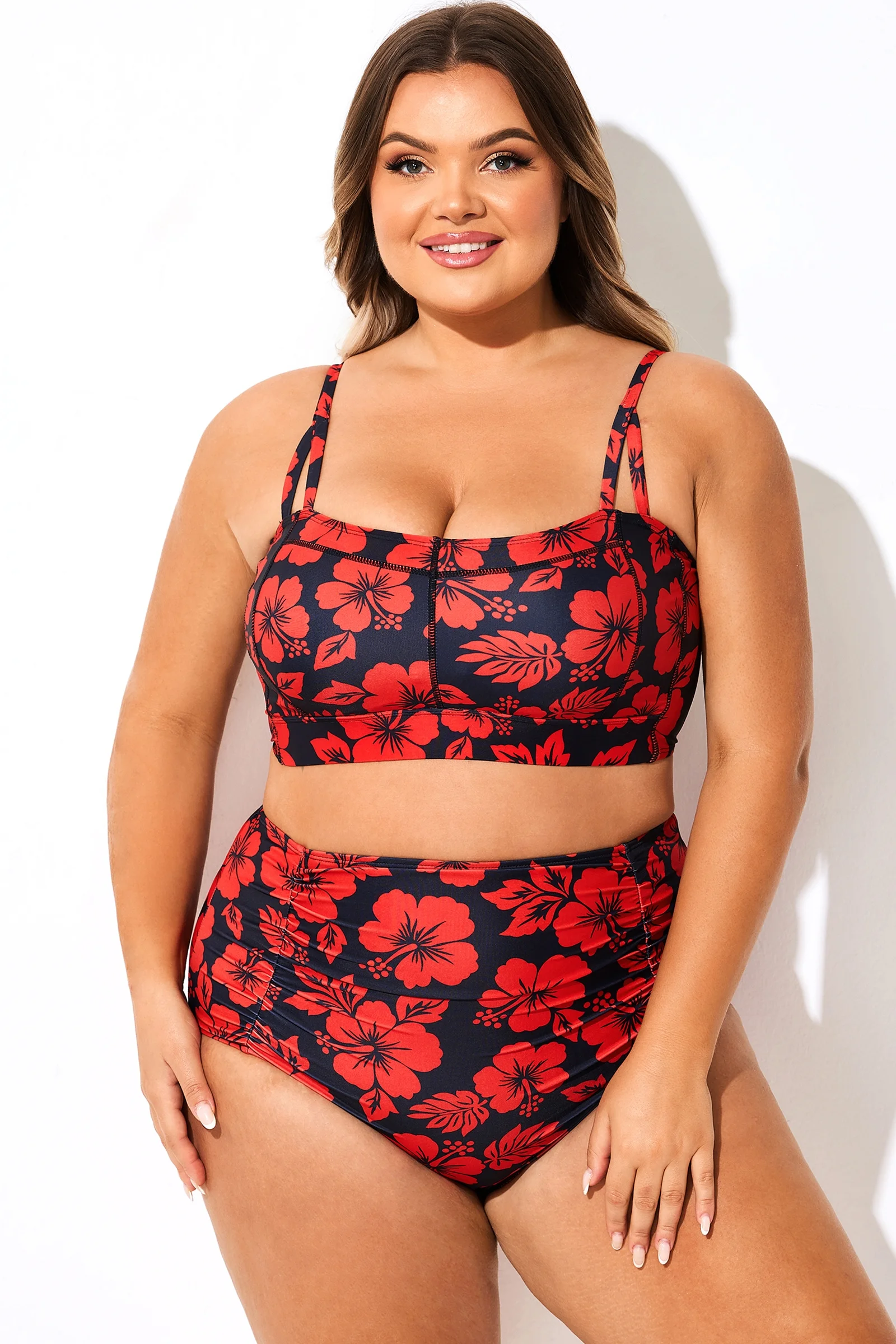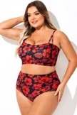 Adjustable Straps Red Floral Print Bikini Top - PremCurve