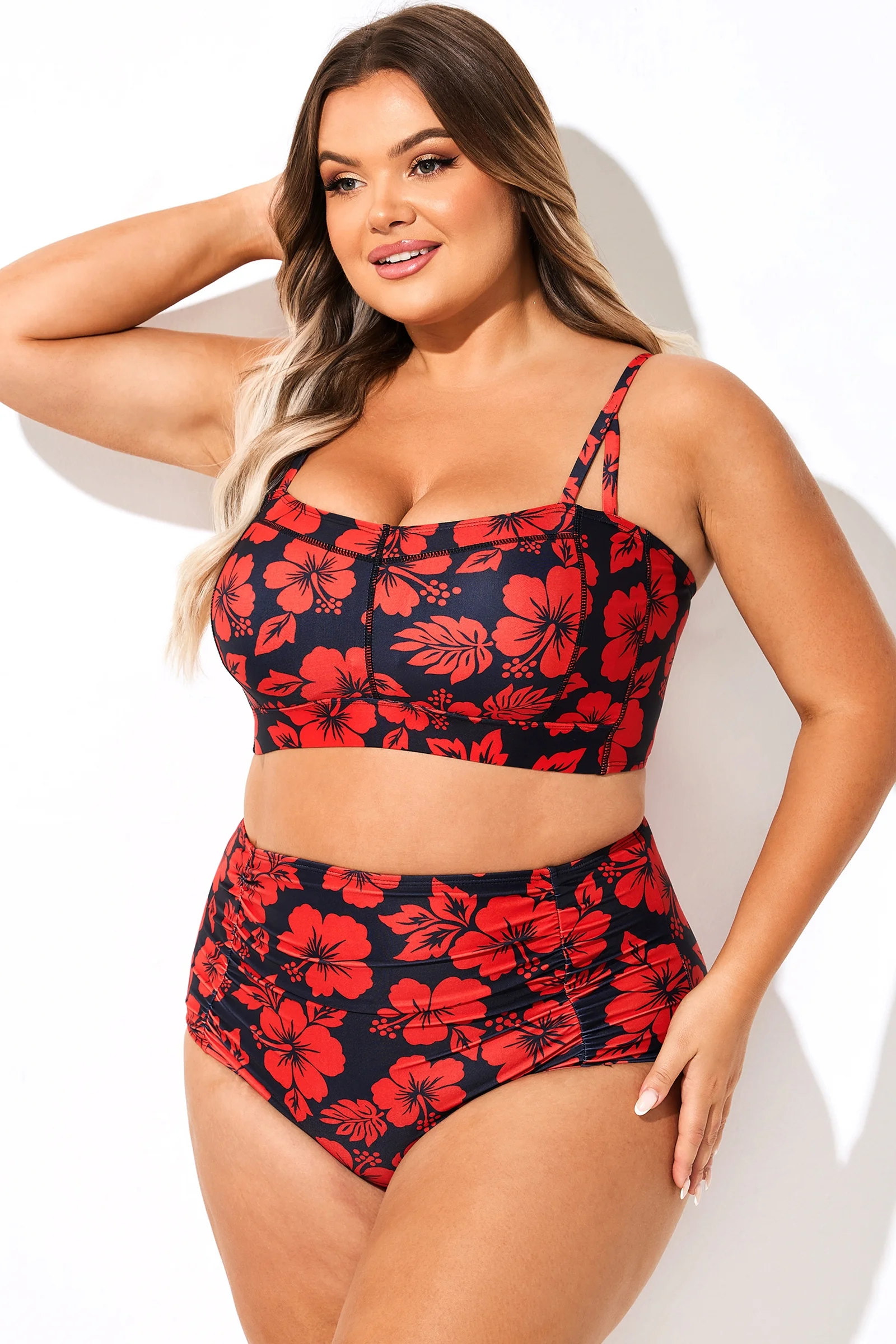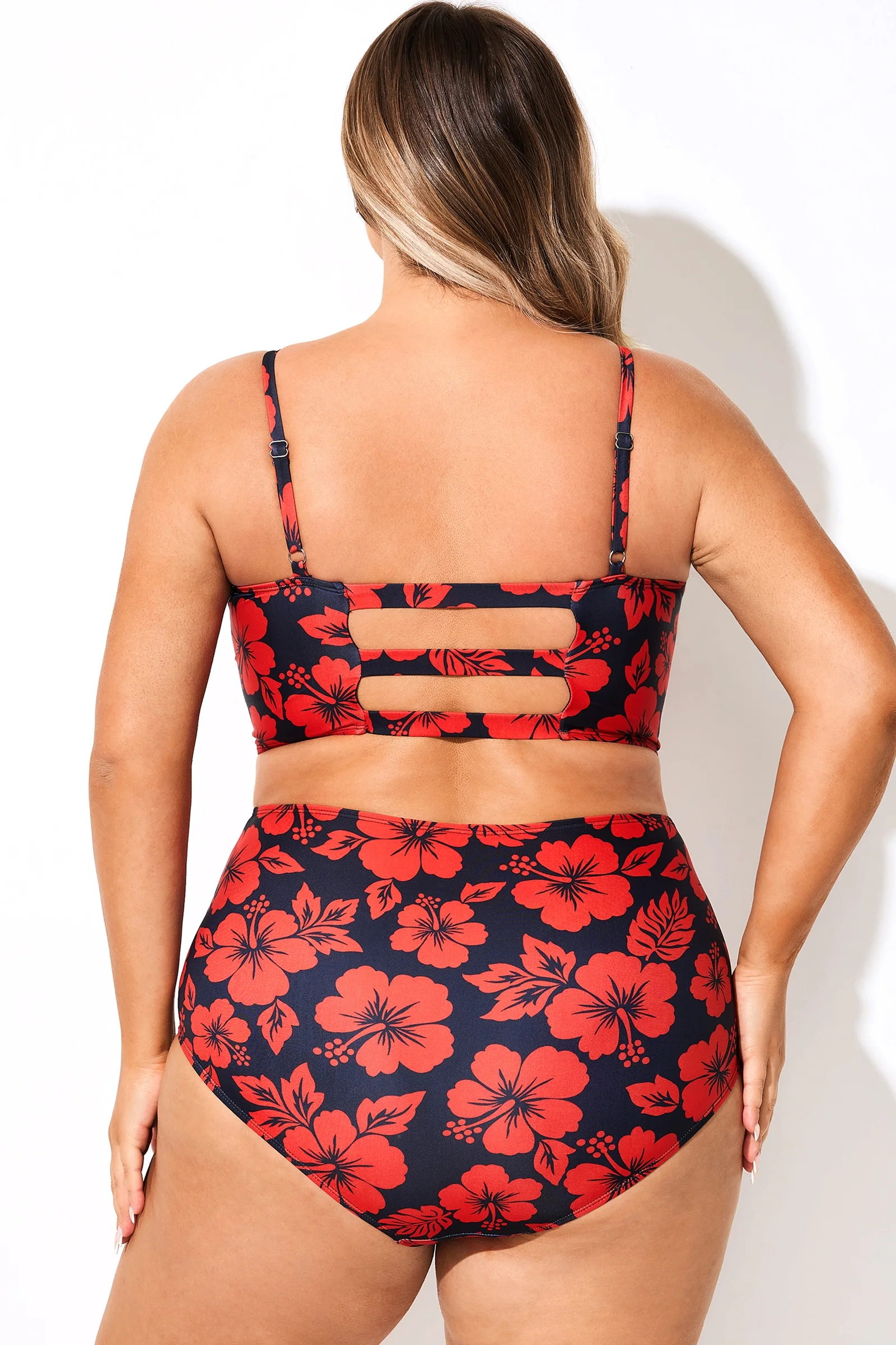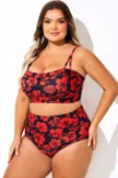 Adjustable Straps Red Floral Print Bikini Top