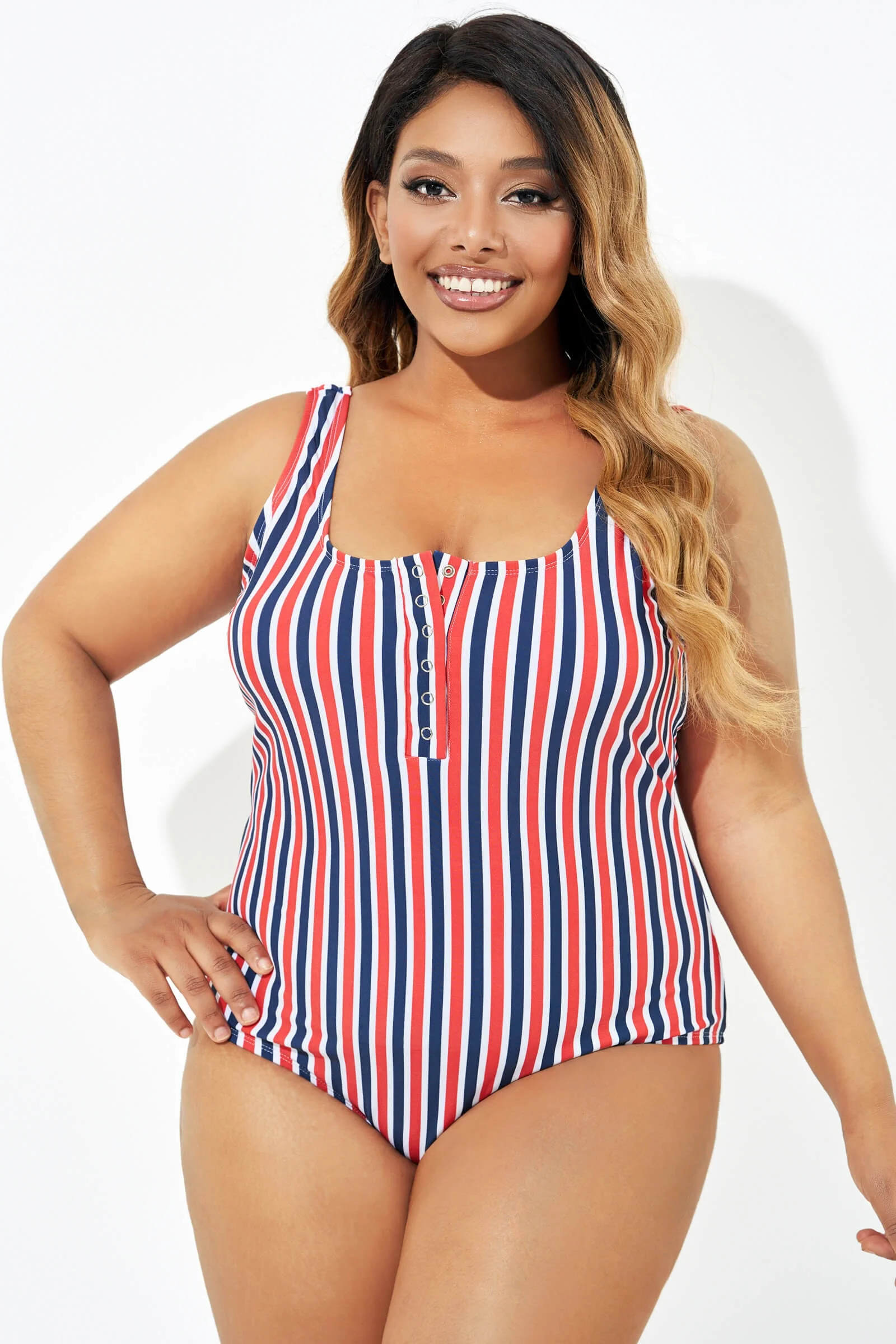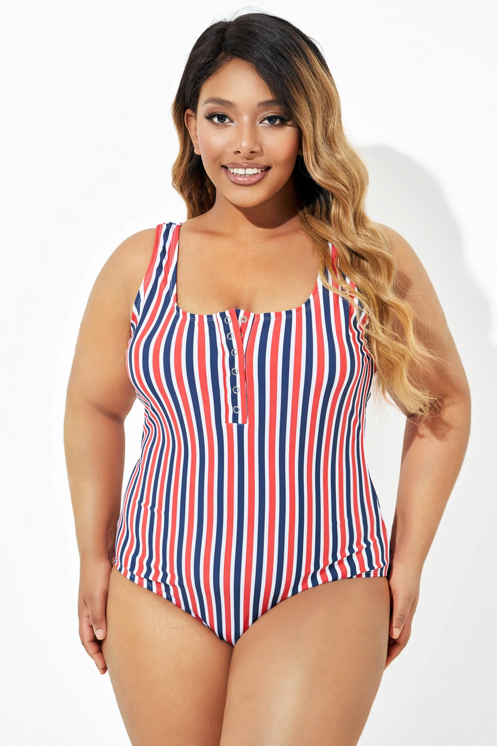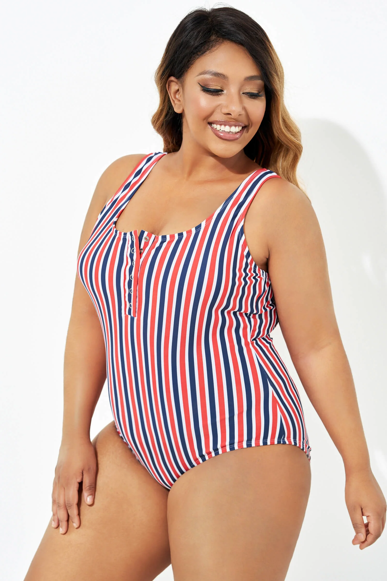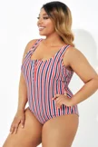 Americana Stripe Button Front One Piece Swimsuit - PremCurve