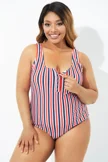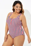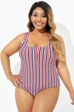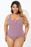 Americana Stripe Button Front One Piece Swimsuit