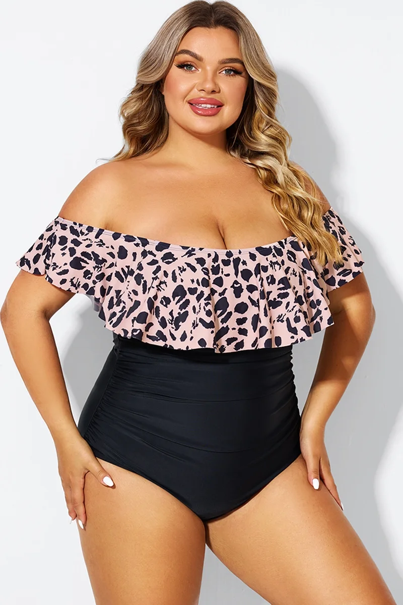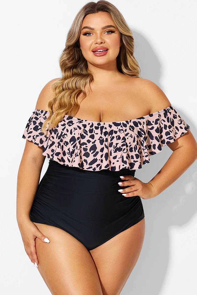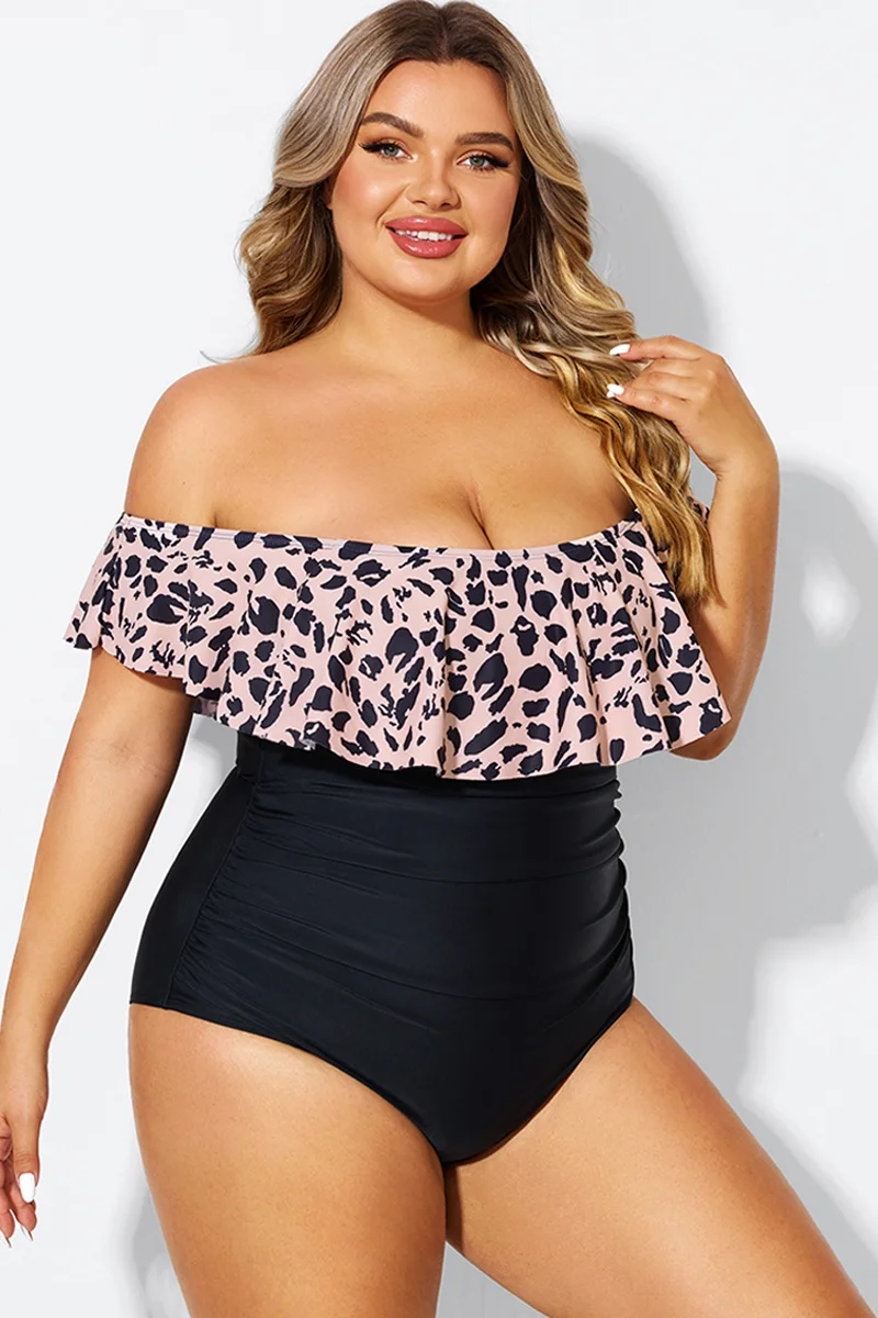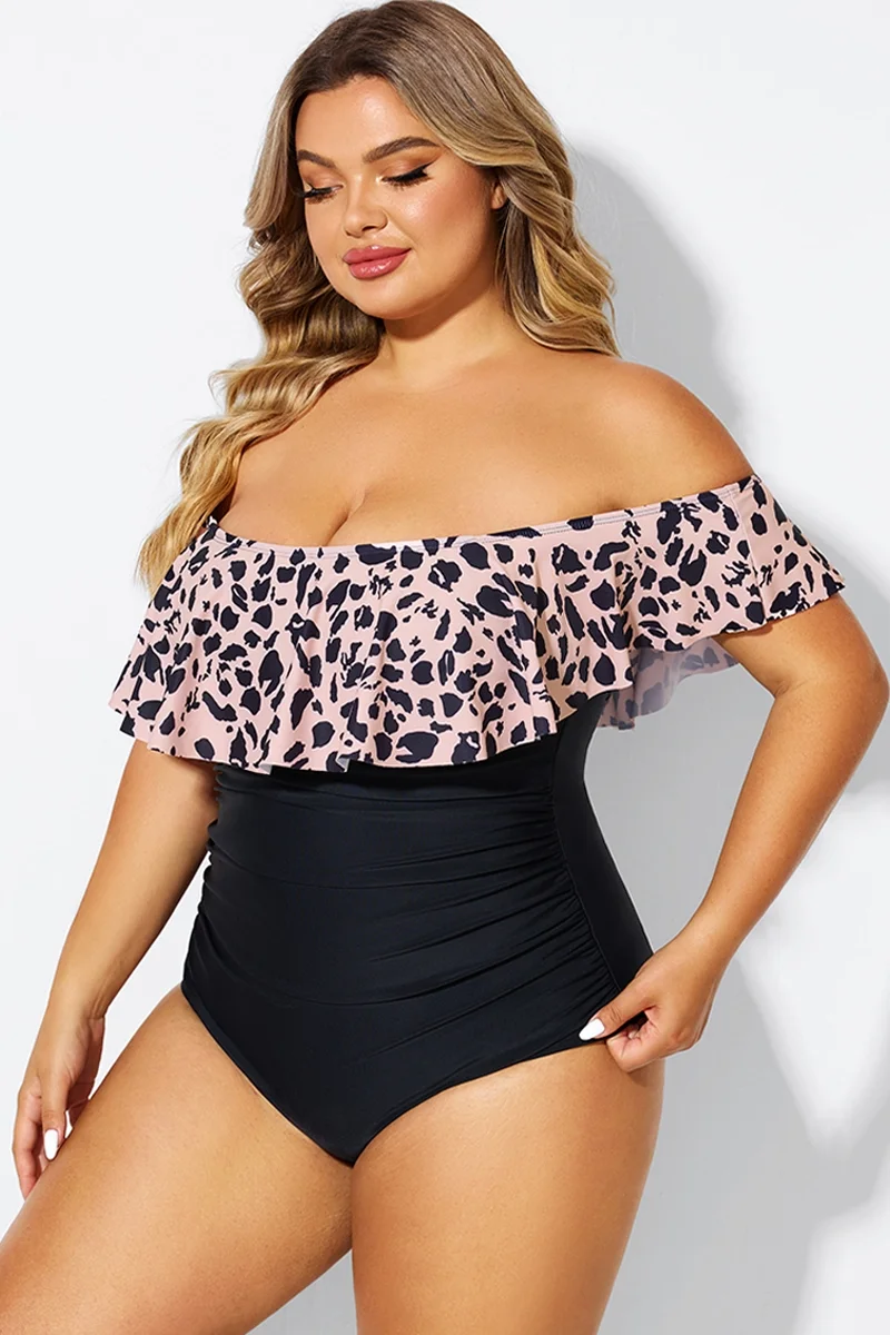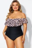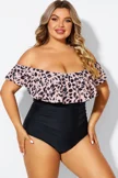 Animal Print Ruffle Off Shoulder One Piece Swimsuit - PremCurve