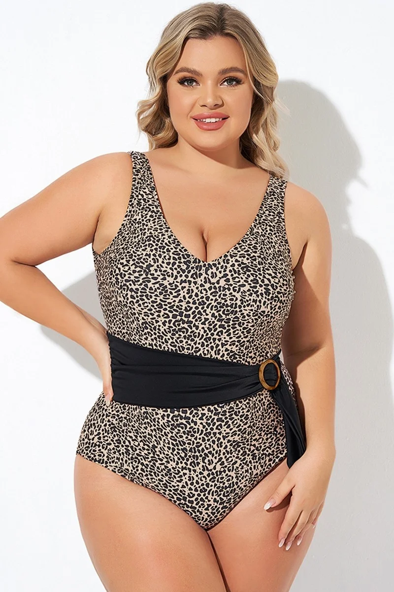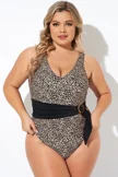Animal Print V-neck Wide Straps One Piece Swimsuit - PremCurve