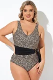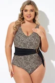 Animal Print V-neck Wide Straps One Piece Swimsuit