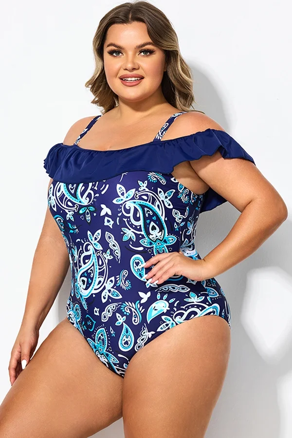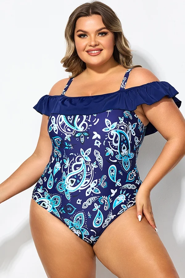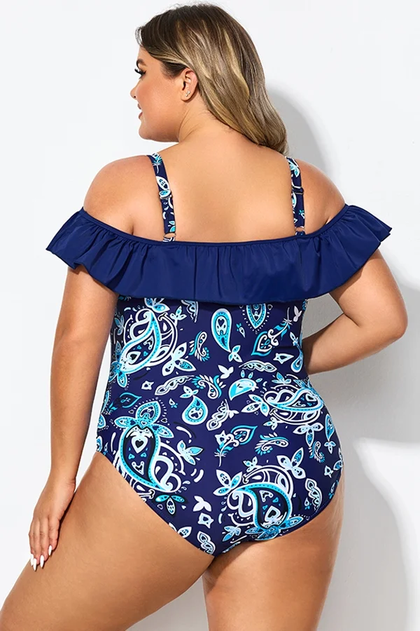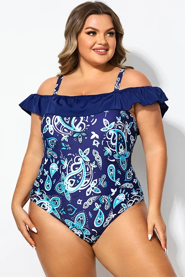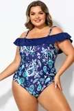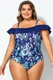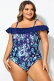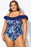 Deep Green Floral Off Shoulder One Piece Swimsuit