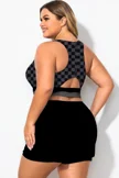 Plus Size Round Neck Black Patchwork Bikini Top