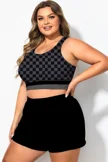 Black And Grey Check Crew Neck Patchwork Bikini Top - PremCurve