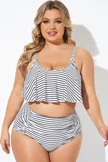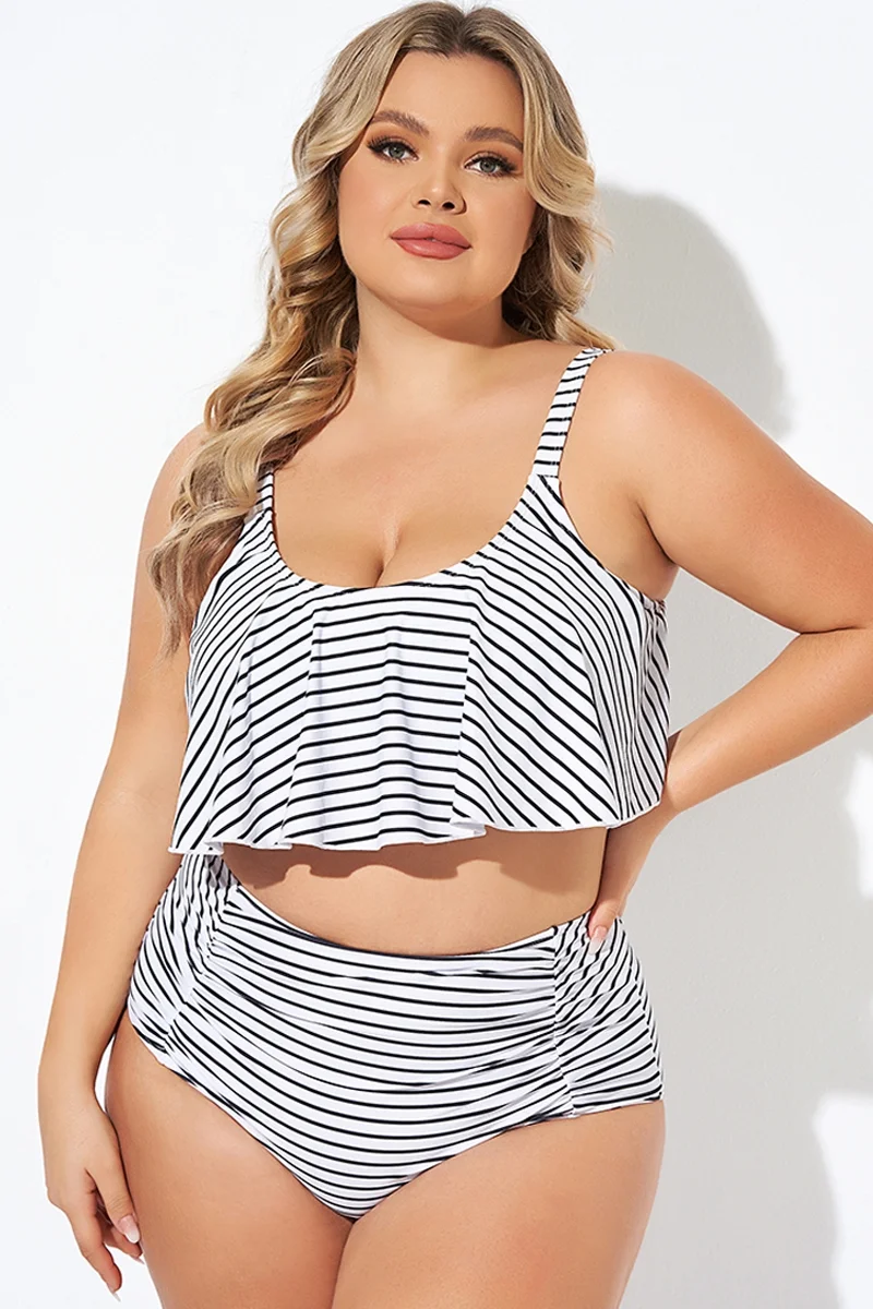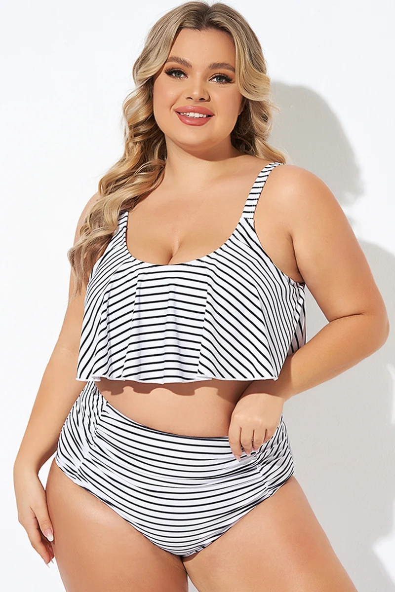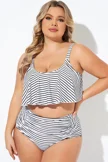 Black and White Stripes Scoop Neck Bikini Top - PremCurve