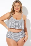 Black and White Stripes Scoop Neck Bikini Top