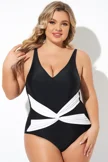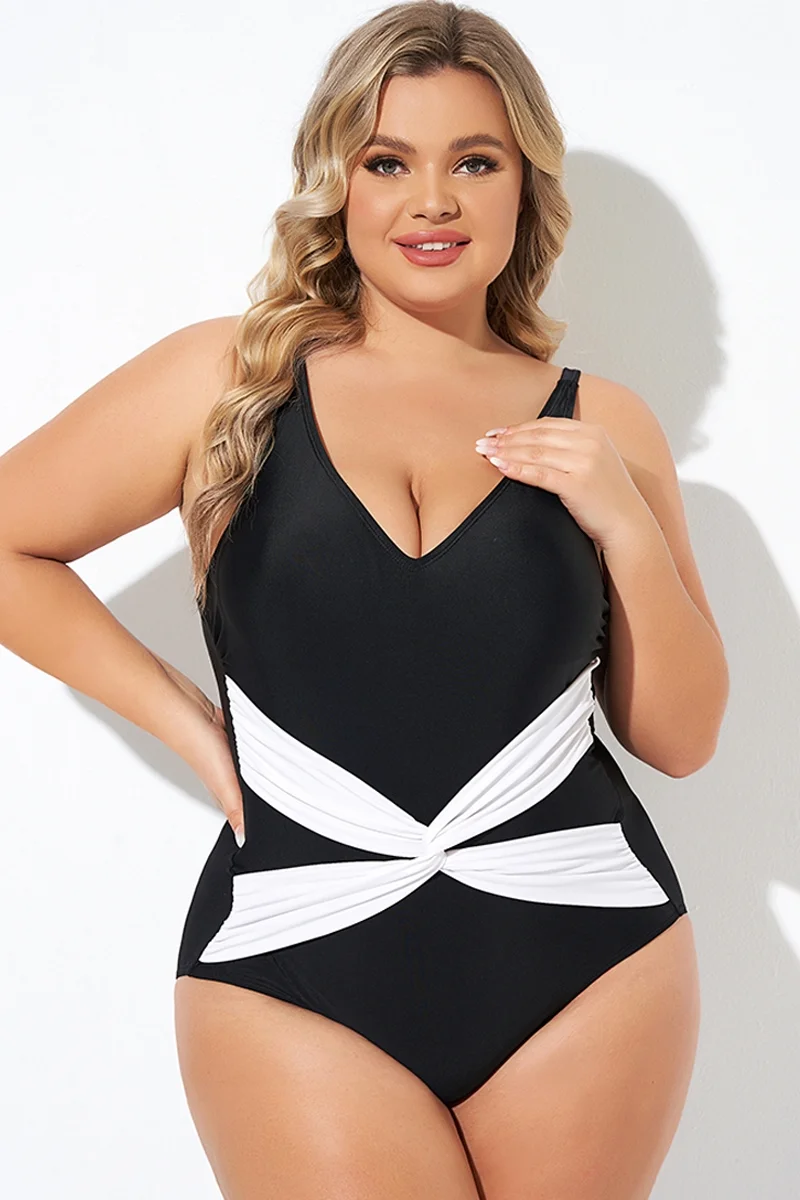 Black and White Twist Front One Piece Swimsuit - PremCurve