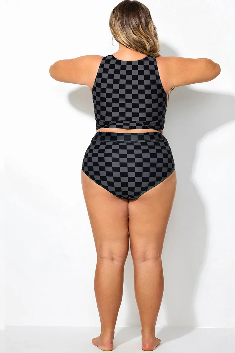 Black Check Elegant High Waist Swim Brief - PremCurve