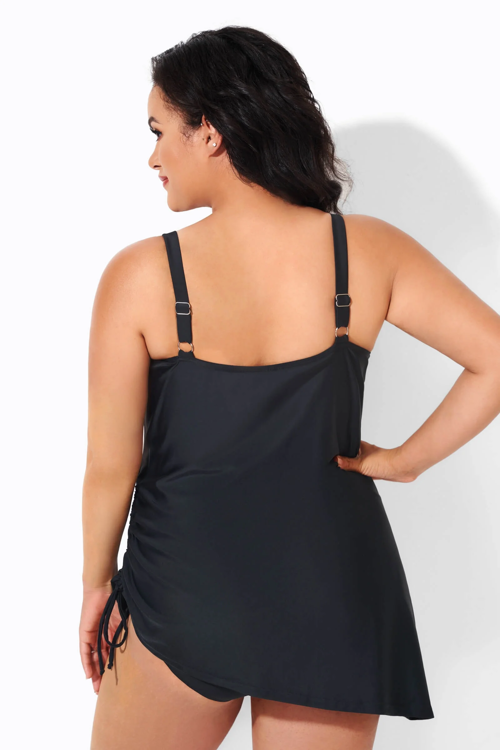 Black Classic Adjustable Stretch Straps One Piece Swimsuit - PremCurve