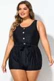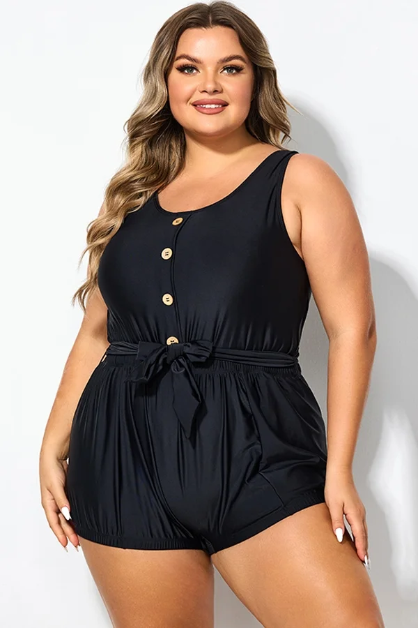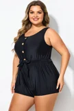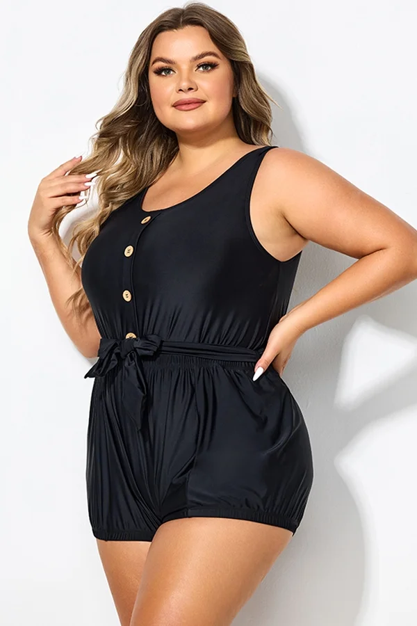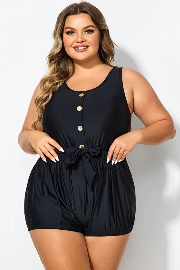 Black Classy Button Romper One Piece Swimsuit - PremCurve
