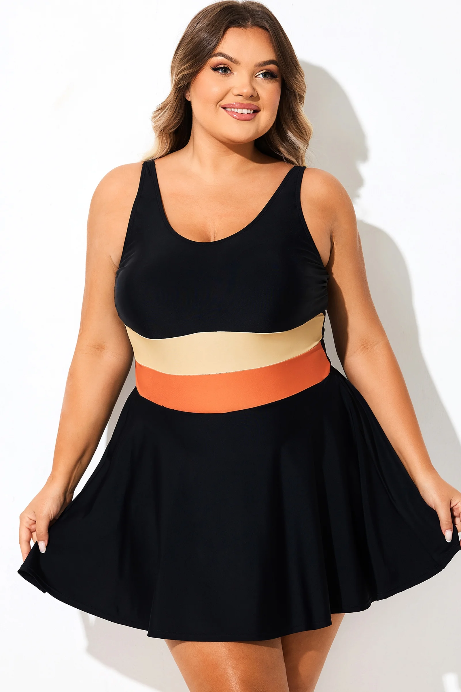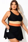 Black Colorblock All-In-One Swimdress