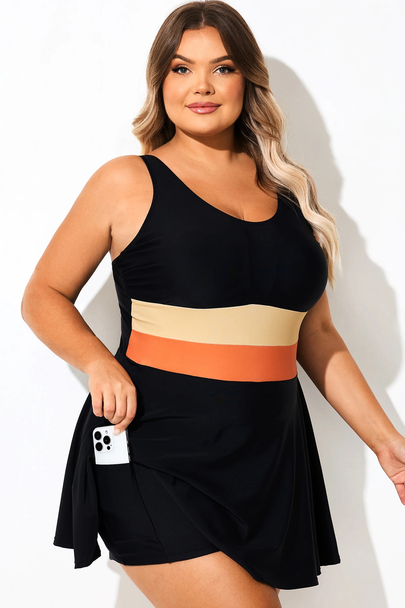 Black Colorblock All-In-One Swimdress - PremCurve