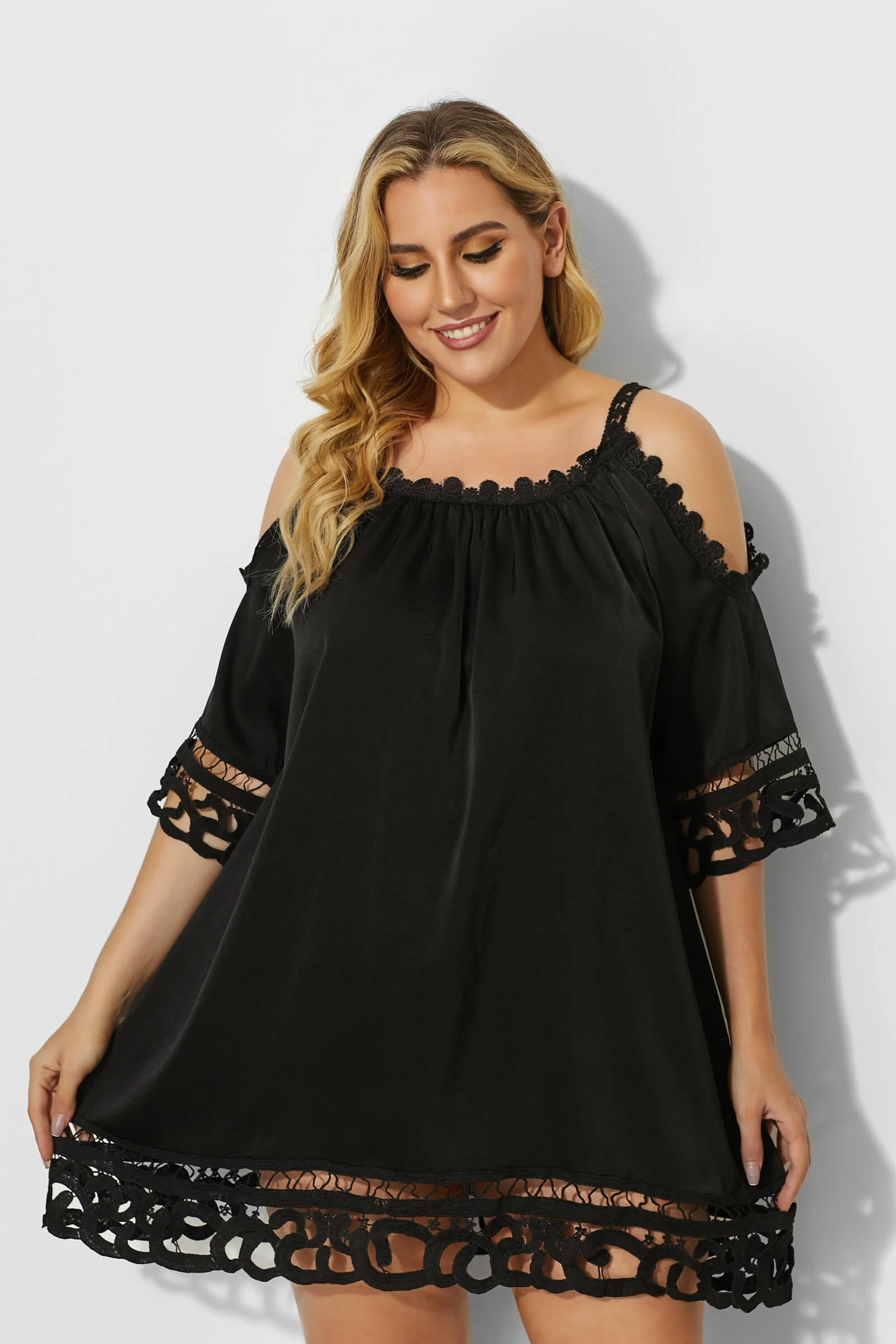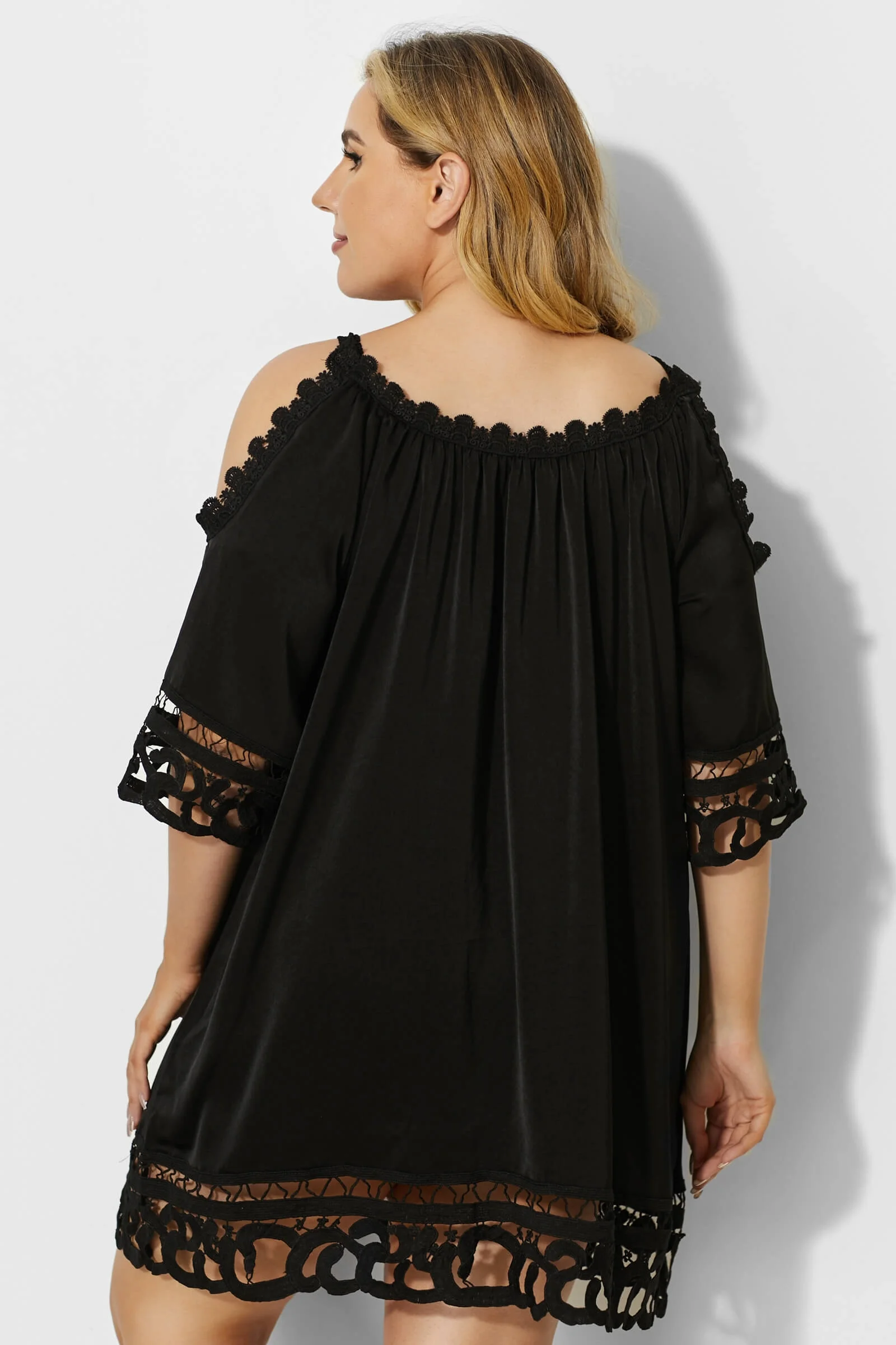 Black Crochet Off the Shoulder Cover Up Dress - PremCurve