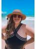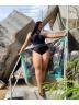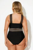 The swimsuit stayed in place in a wave pool. Beautiful styling details and textured fabric