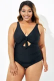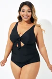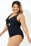 Black Cut Out Tie Front Underwire One Piece Swimsuit - PremCurve