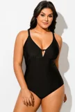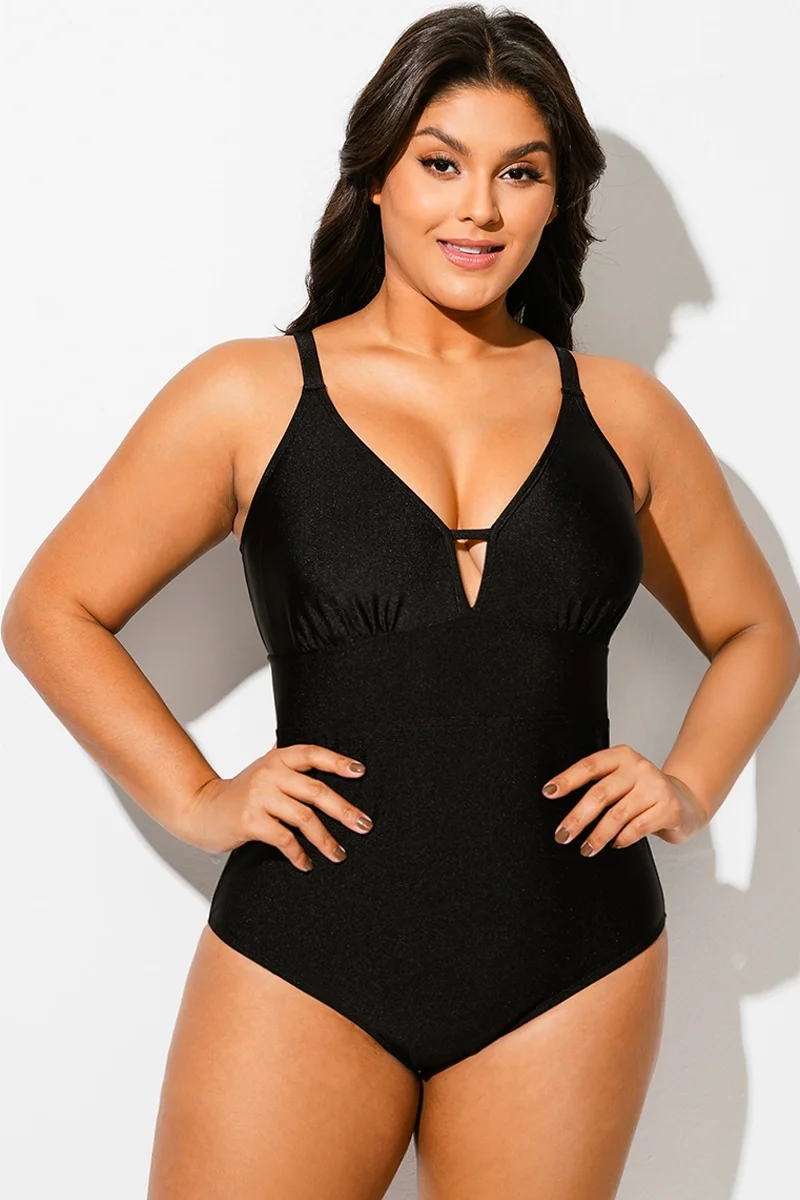 Black Cut Out V-Neck One Piece Swimsuit - PremCurve