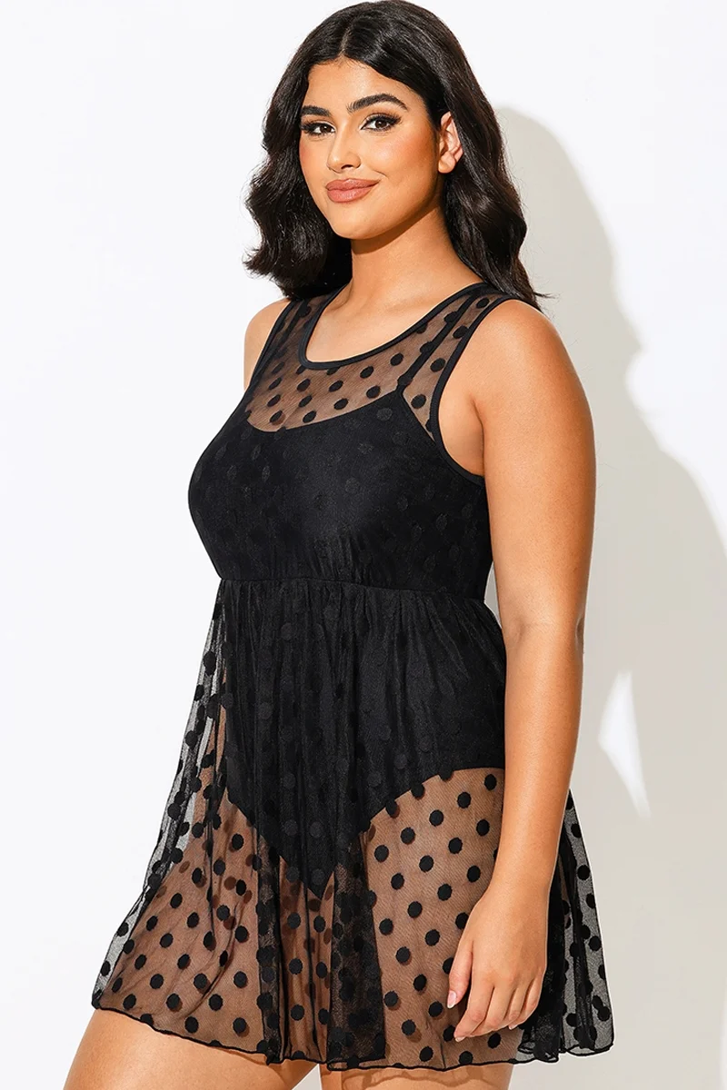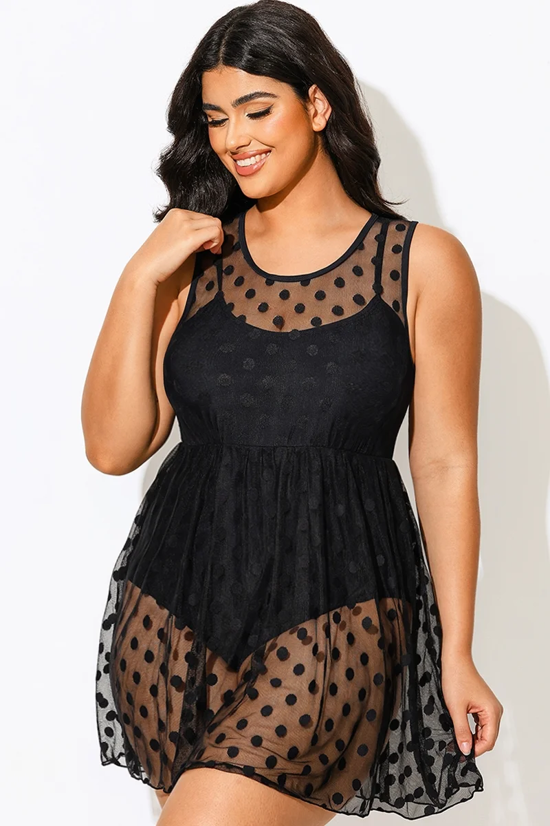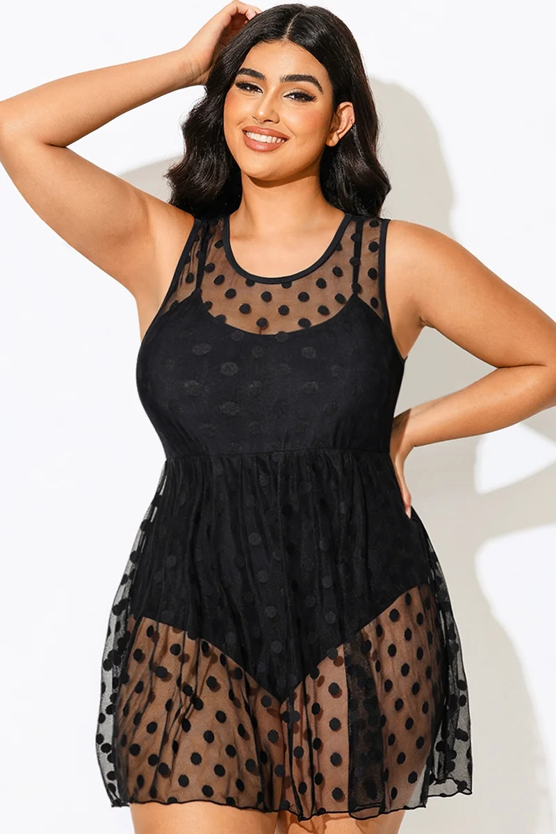 Black Dots Mesh Underwire Hook & Eye Closure One-piece Swimsuit - PremCurve