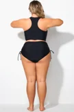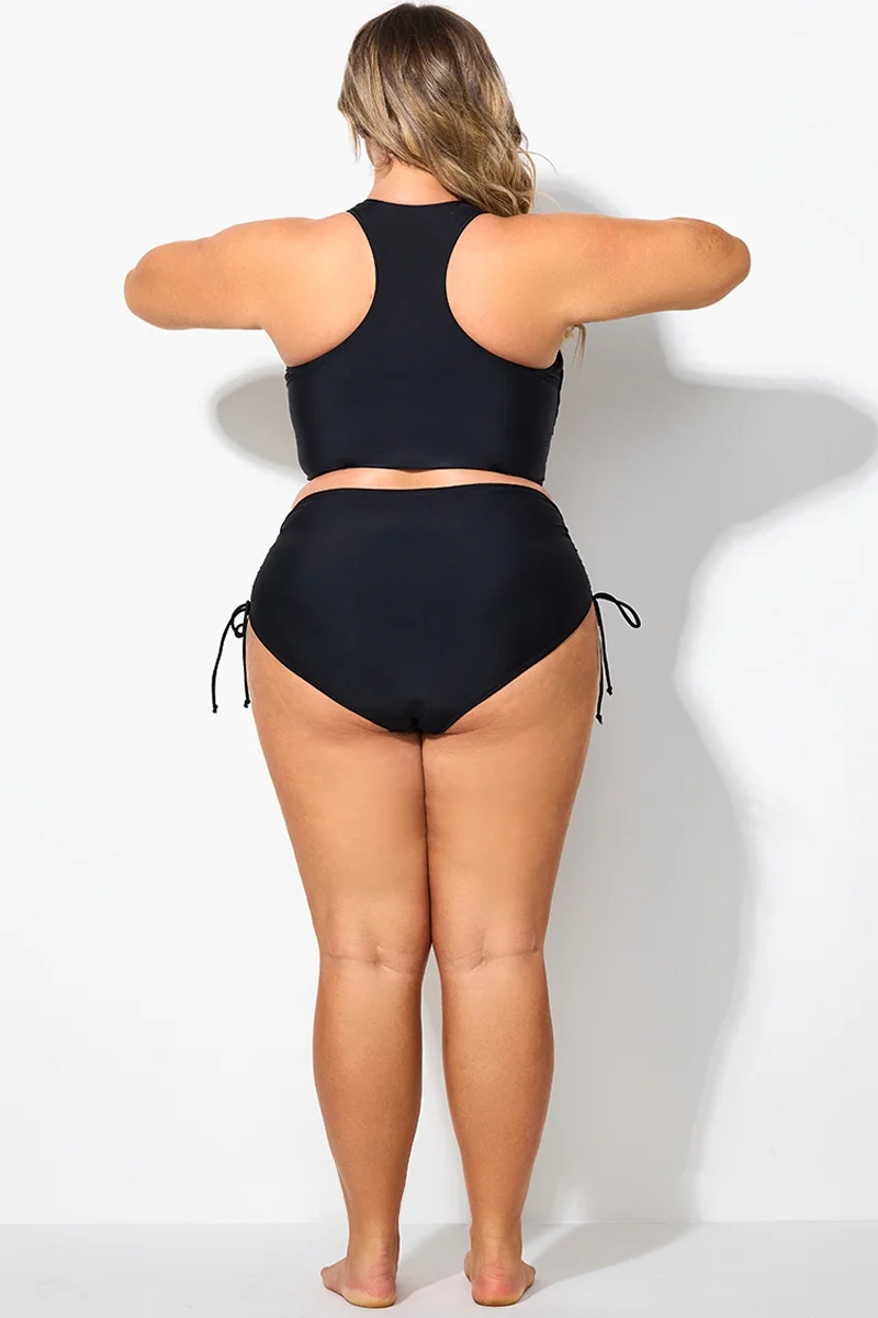 Black Drawstring Side High Waisted Bikini Bottom - PremCurve