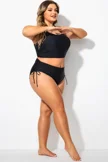 Plus Size Round Neck Black Patchwork Bikini Top