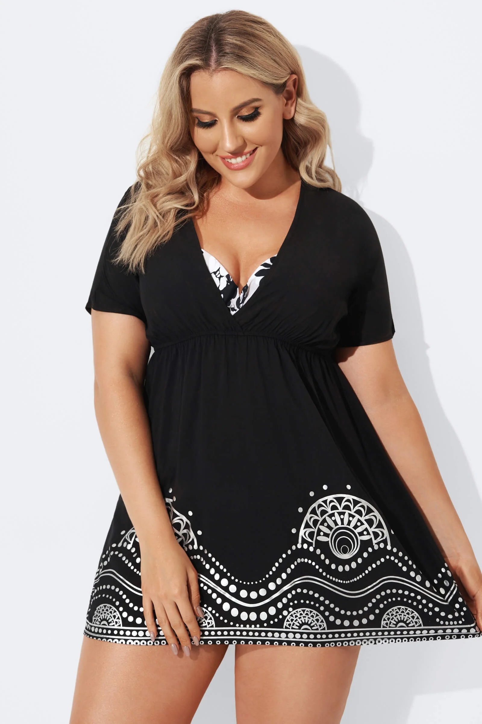 Black Elastic Waistband V-Neck Cover Up Dress - PremCurve