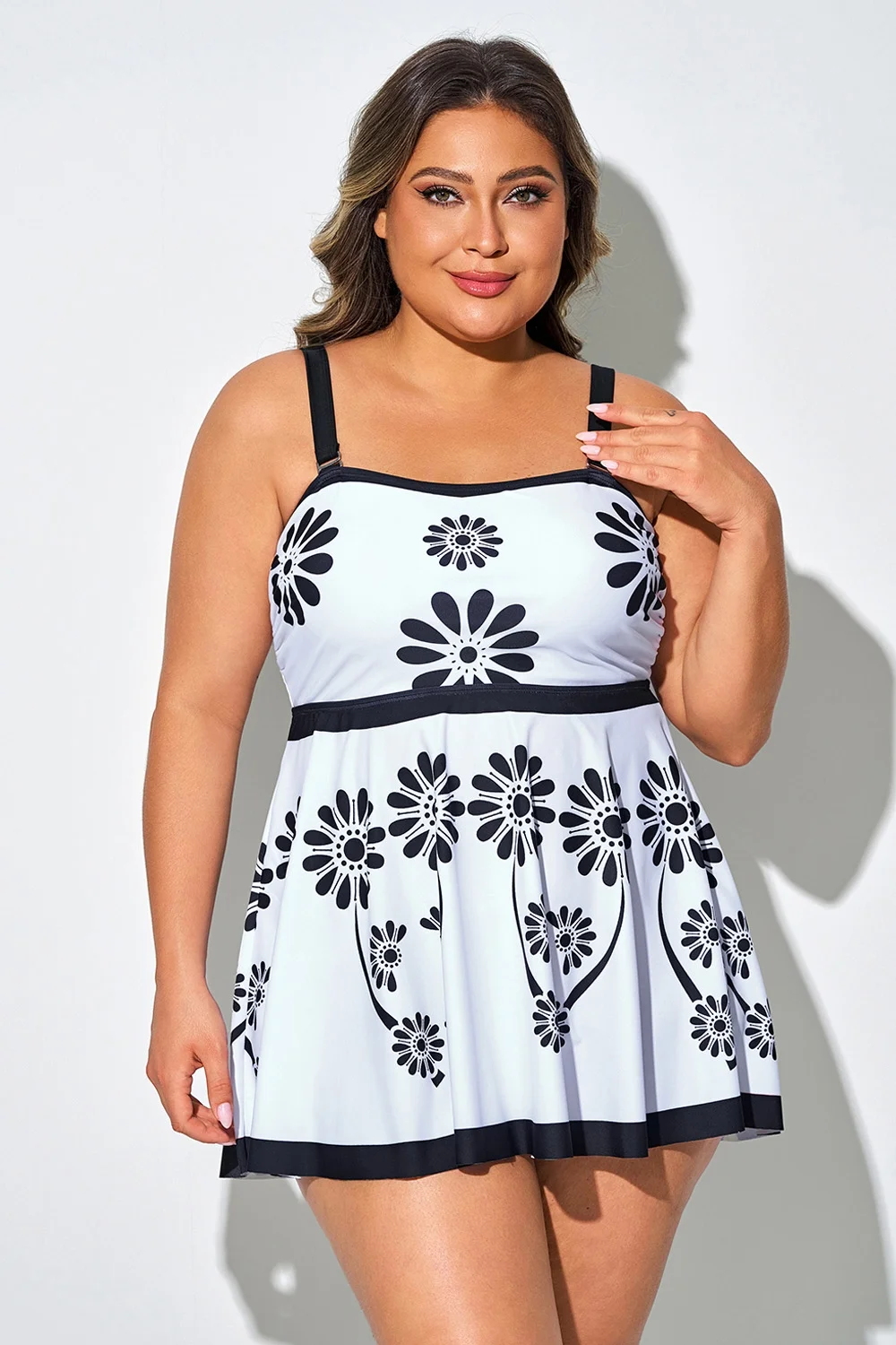 Black Floral Adjustable Straps Tankini Top - PremCurve