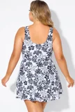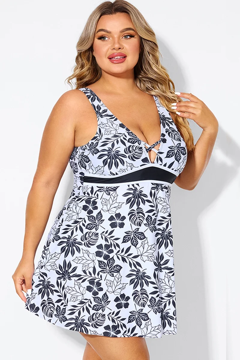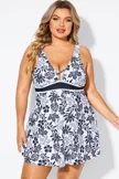 Black Floral Print Cut Out Plus Size Swimdress - PremCurve