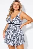 Black Floral Print Cut Out Plus Size Swimdress