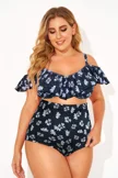 Black Floral Ruffled Underwire Women Bikini Top - PremCurve