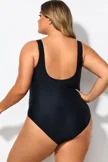 Plus Size Round Neck Black Patchwork Bikini Top