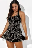 Black Floral Printed Double Strap Women Swimdress