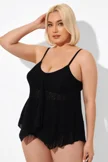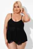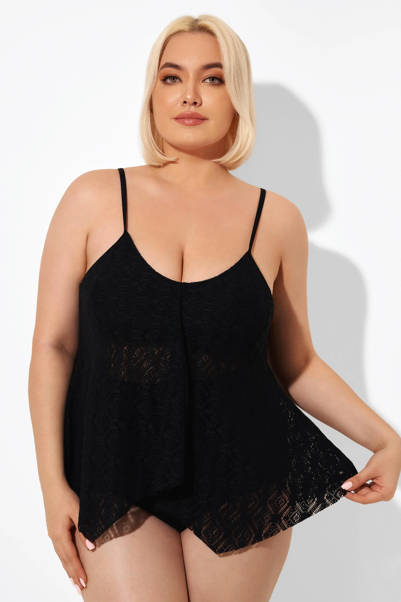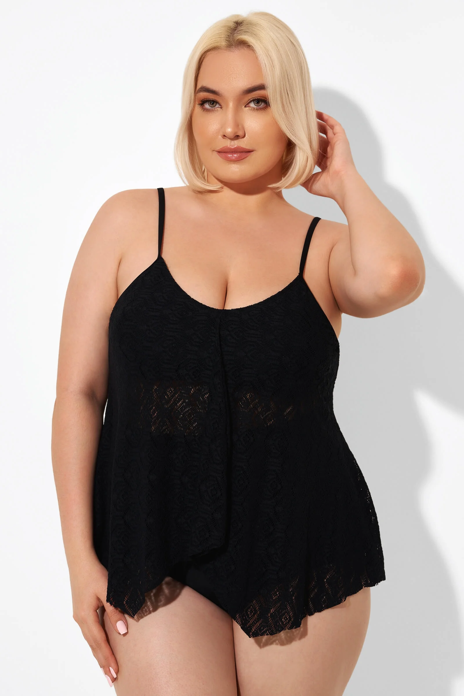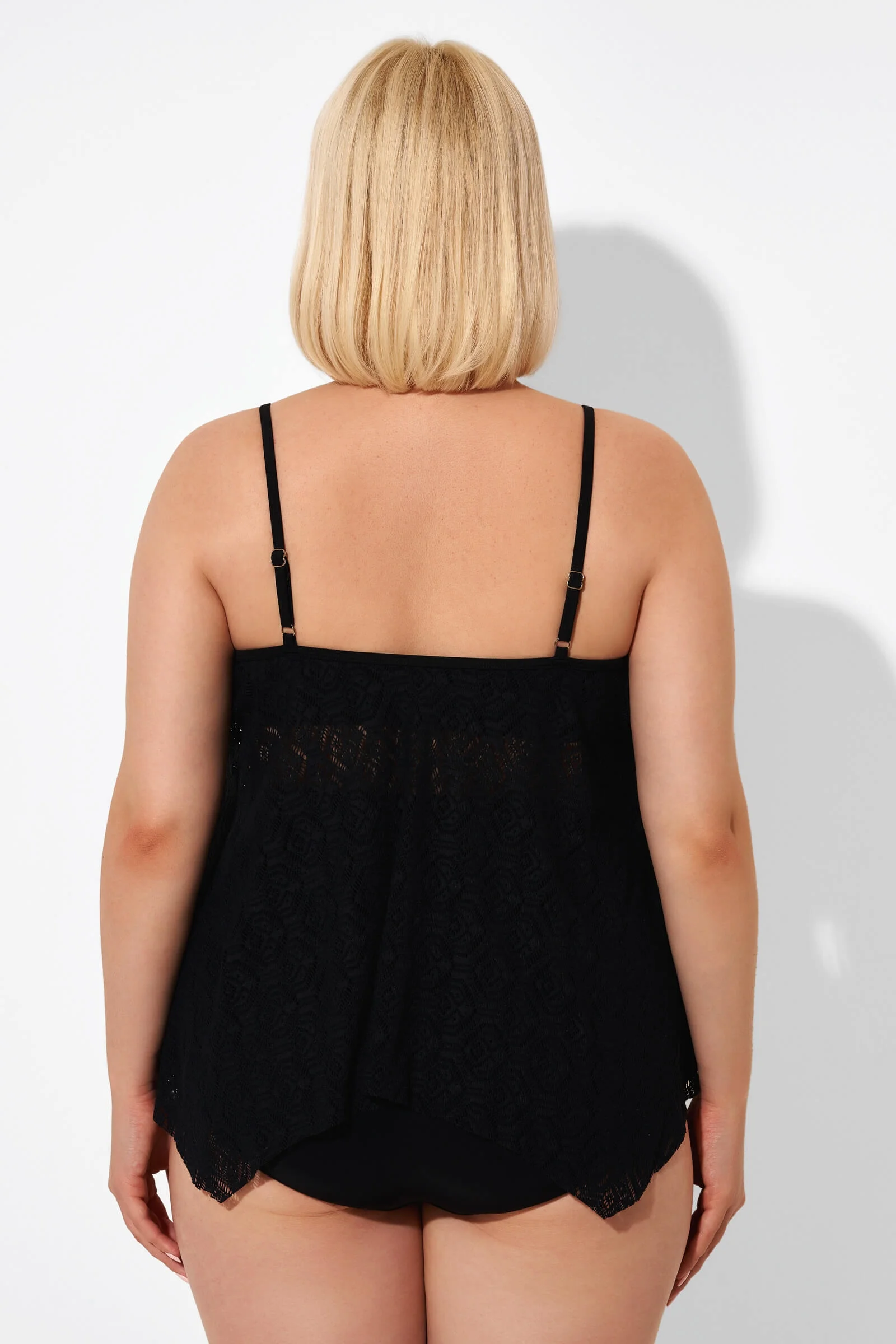 Black Handkerchief Crochet V-Neck Tankini Top - PremCurve
