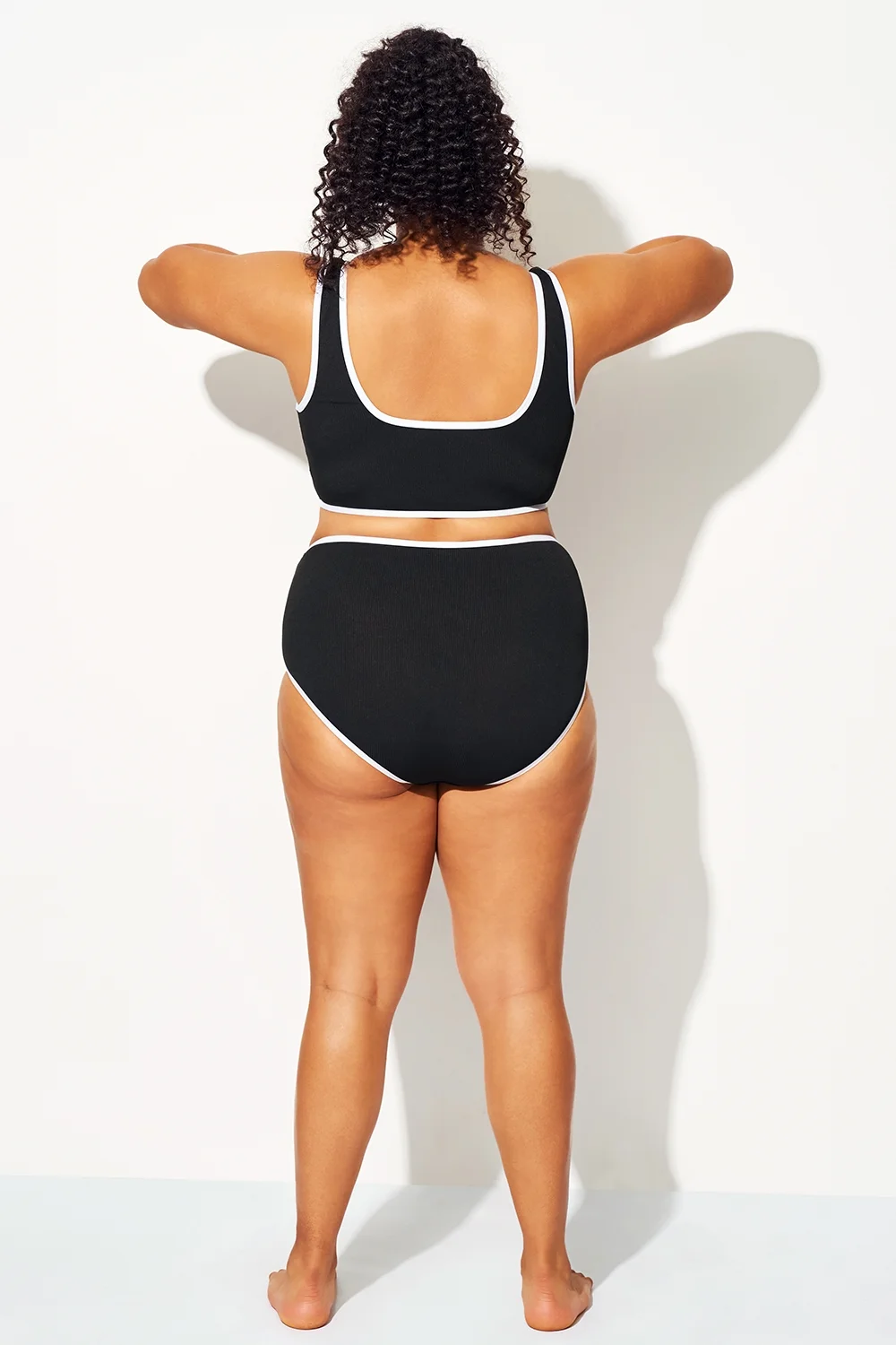 Black High Waist Bikini Bottom With White Trim - PremCurve