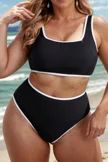 Plus Size Round Neck Black Patchwork Bikini Top