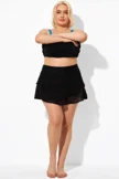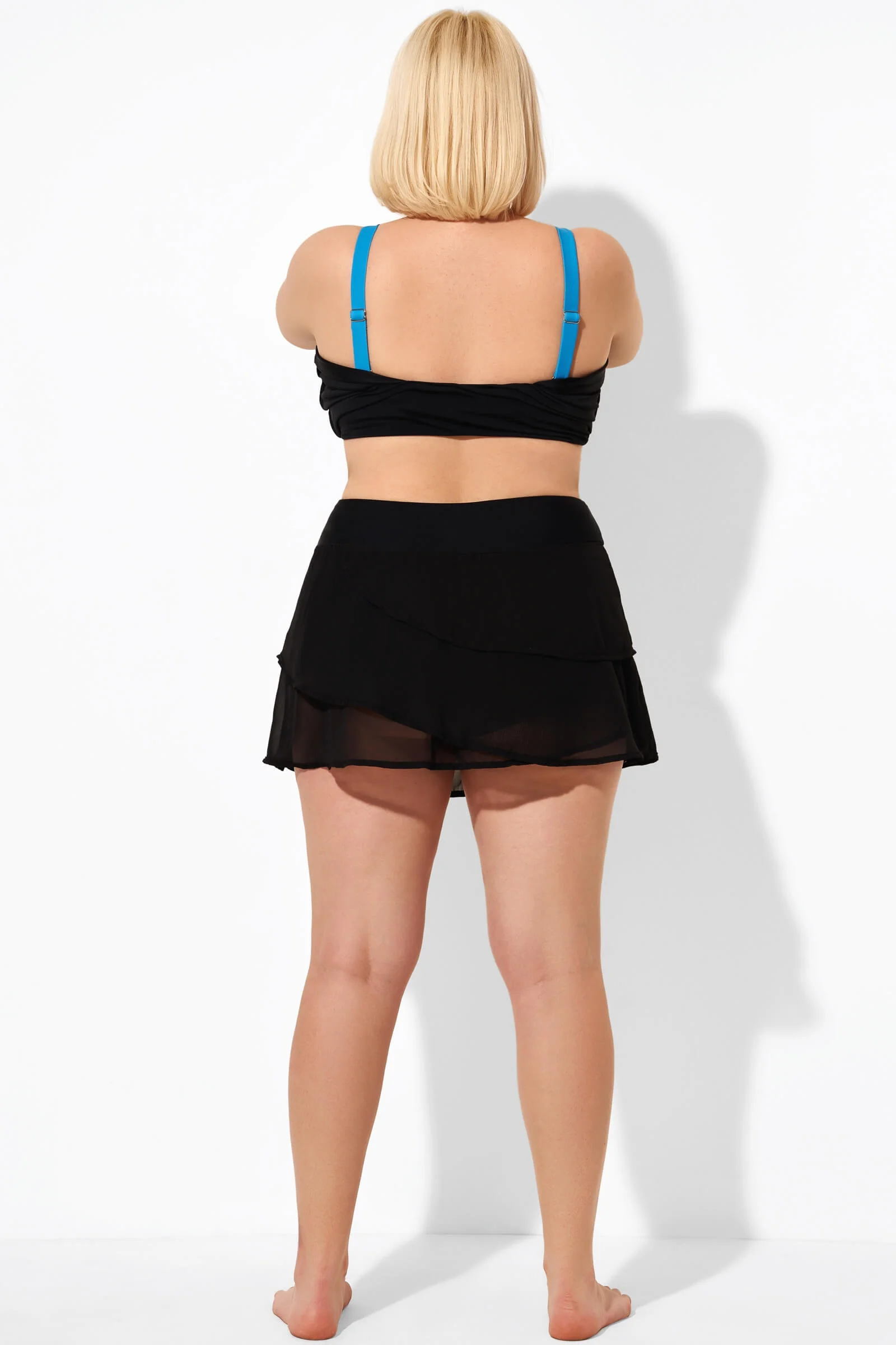 Black High Waisted Layered Black Swim Skirt - PremCurve