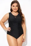 Black Mesh Rounded Back Neckline One Piece Swimsuit
