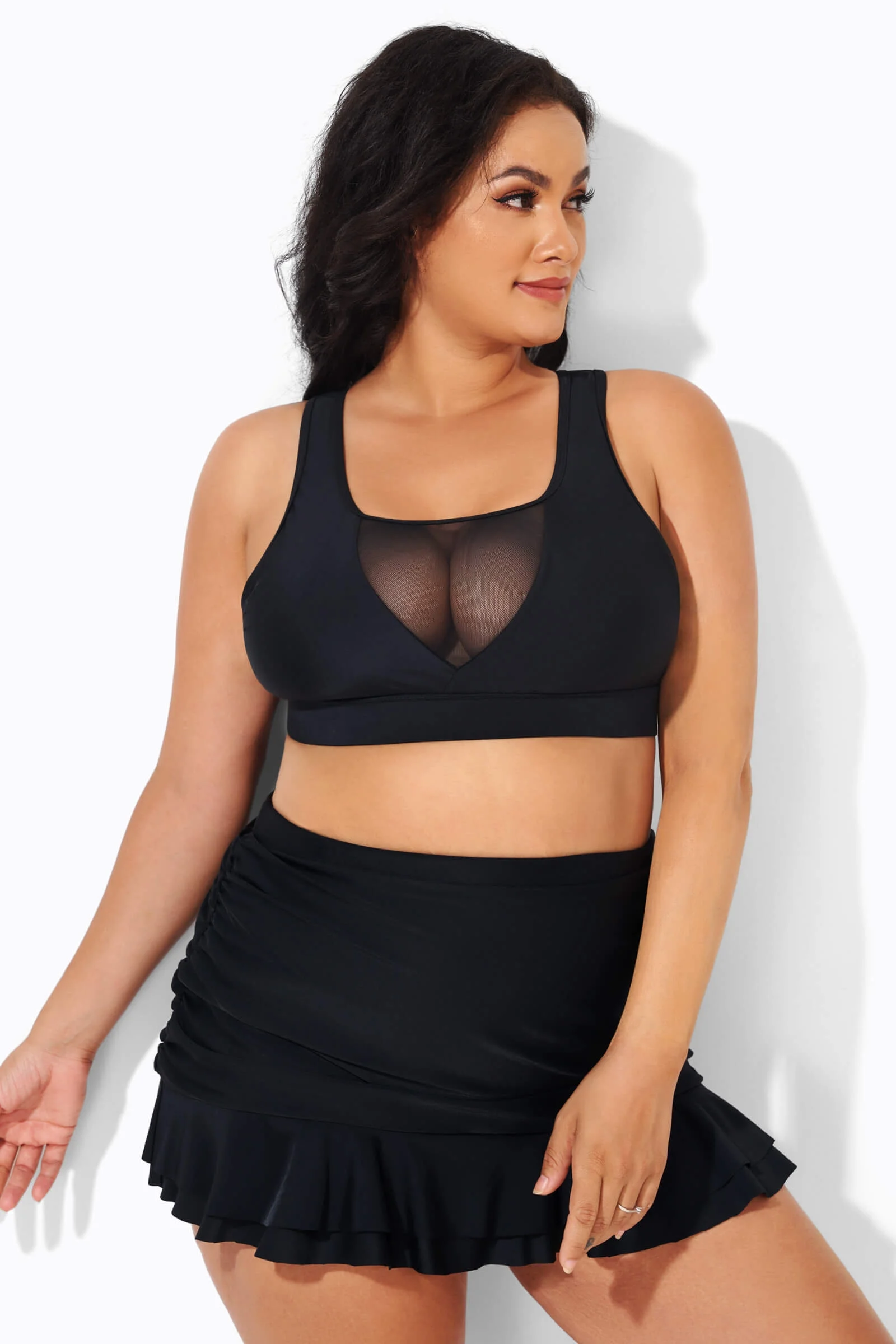 Black Mesh Sexy Open Back Bikini Top - PremCurve
