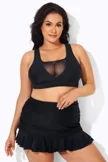 Plus Size Round Neck Black Patchwork Bikini Top