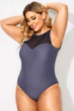 Black Mesh Sweetheart Neckline One Piece Swimsuit