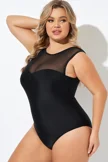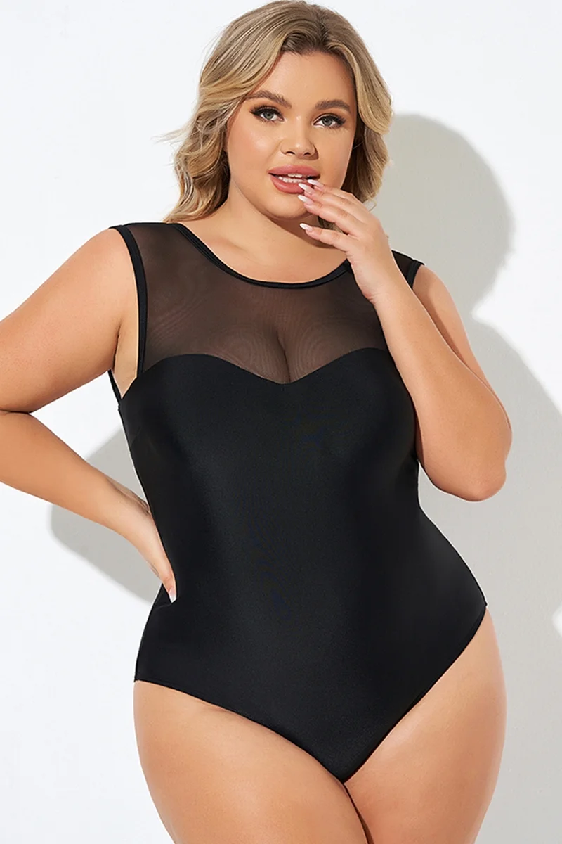 Plus Size Round Neck Black Patchwork Bikini Top