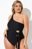 Black One Shoulder Tie One Piece Swimsuit - PremCurve