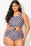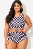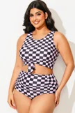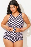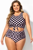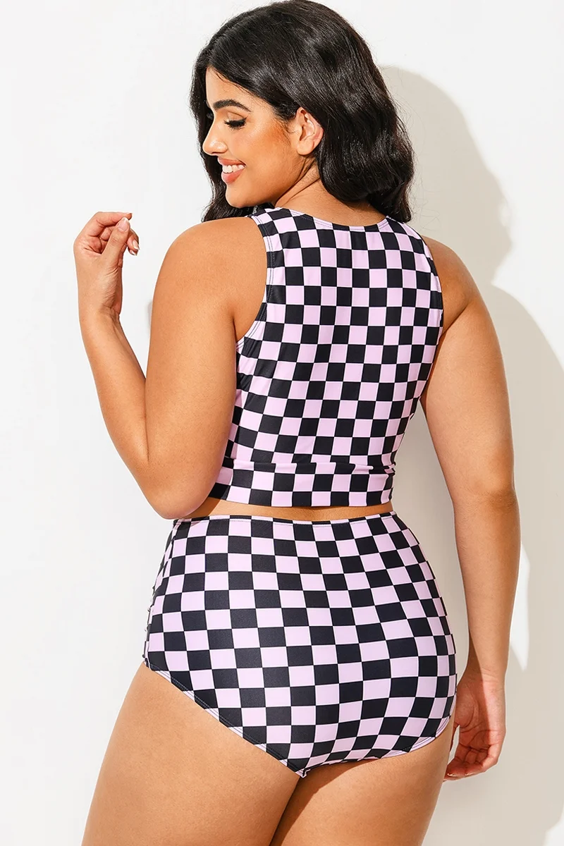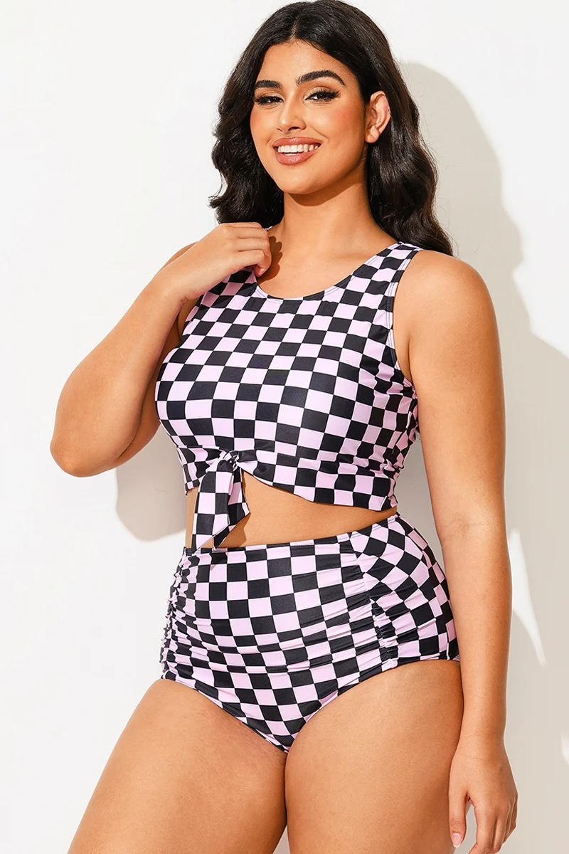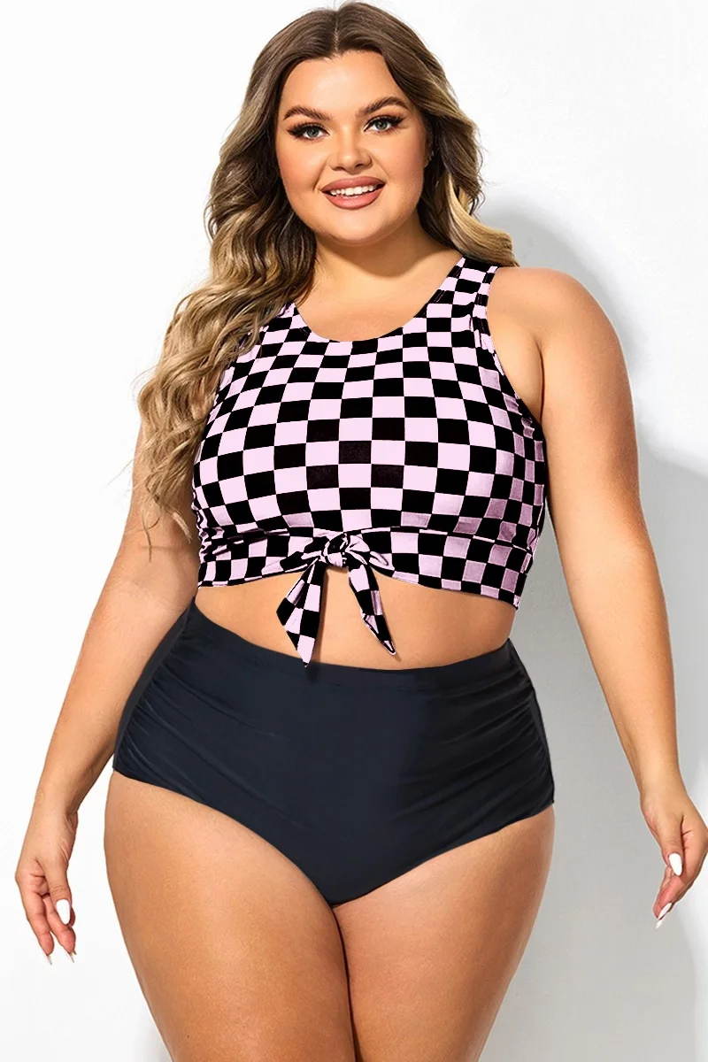 Black & Pink Check Knotted Crop Bikini Top - PremCurve