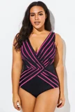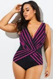 Black & Pink V-Neck Streak Casual One Piece Swimsuit