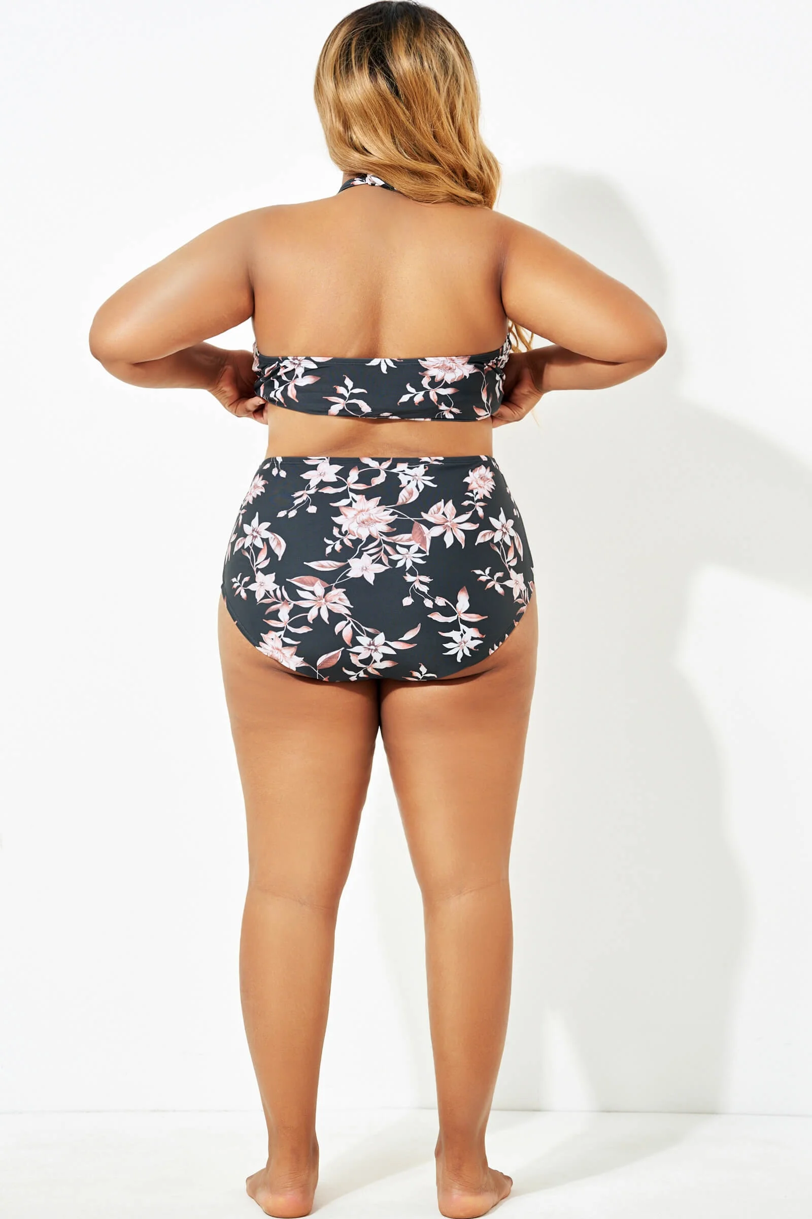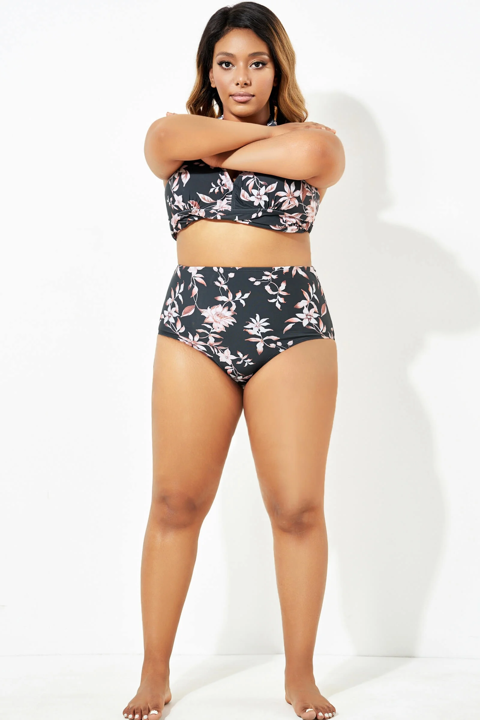 Black Printed High Waist Lady Swim Pant - PremCurve