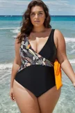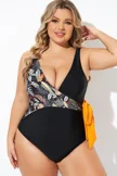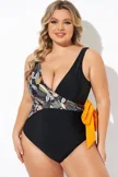 Black Printed Tie Wrap One Piece Swimsuit - PremCurve