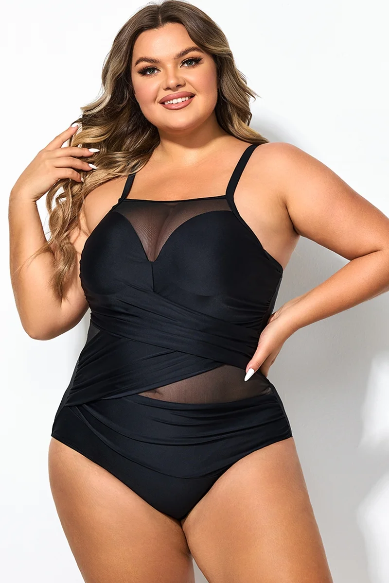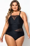 Black Round Neck Adjustable Straps One Piece Swimsuit - PremCurve