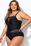 Plus Size Round Neck Black Patchwork Bikini Top