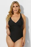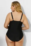 Black Ruched Fashion V-neck One Piece Swimsuit - PremCurve