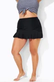 I was hesitant to purchase this swim skirt bottom because it's more form-fitting than I usually prefer; however, this swim skirt is incredibly flattering and true to size. Since it is form-fitting, I do not have to worry about the skirt flowing up when I'm in the water. Highly recommend!